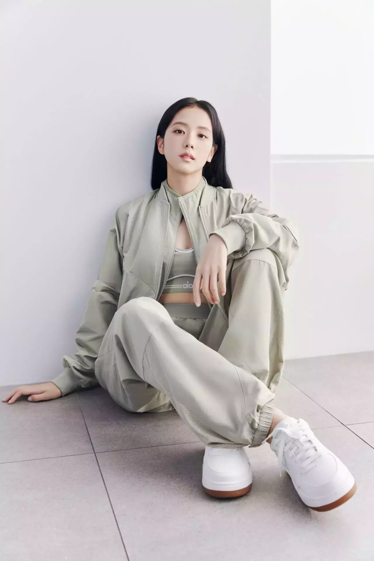 In this striking look, Jisoo exemplifies how to master the art of monochrome dressing. The combination of a black crop top and white joggers is a study in contrasts, creating a visually balanced outfit that’s both modern and sleek. The white jacket, casually draped over her shoulders, adds a layer of effortless coolness, while the black and white sneakers tie the whole look together. This outfit is the perfect example of how to do athleisure right—comfortable enough for a workout but stylish enough for a day out. Whether you’re hitting the gym, running errands, or grabbing coffee with friends, this look is all about embracing both form and function with style.