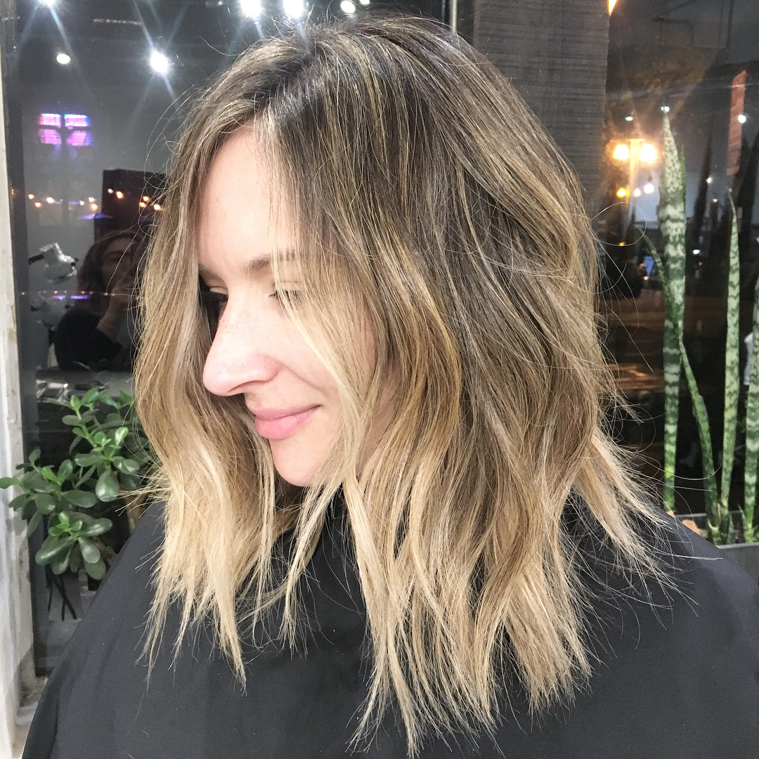 On the contrary, you should never ask your hair stylist to layer your lob. Layers are not what gives tousled lobs their voluminous, low-maintenance, messy-on-purpose look. In fact, a layered lob is very difficult to style and tame. Ask for texturizing and–if your hair is especially thick–thinned ends to achieve that coveted piece-y, casual-cool lob style.