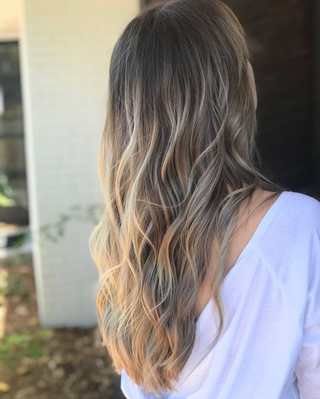 Balayage is much lower-maintenance and less damaging for your hair than all-over bleaching. A look like this brunette and blonde balayage is perfect for women who want to go blonde but are worried about hair damage from excessive bleaching and want to maintain a semi-natural look.