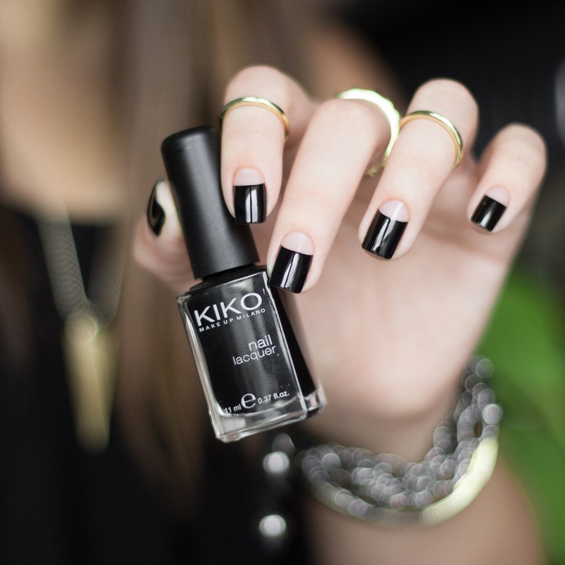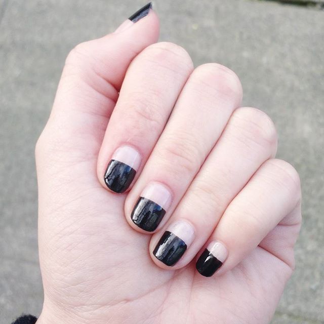 This is a great nail design for short nails. Just a small line done diagonally across the tips make for an easy to do design. use tape to block off the portion of the nail you want to leave natural. While this black tip is pretty, you can choose the color of your choice. Top your nails off with a clear coat. And you can find more short nail art ideas here.