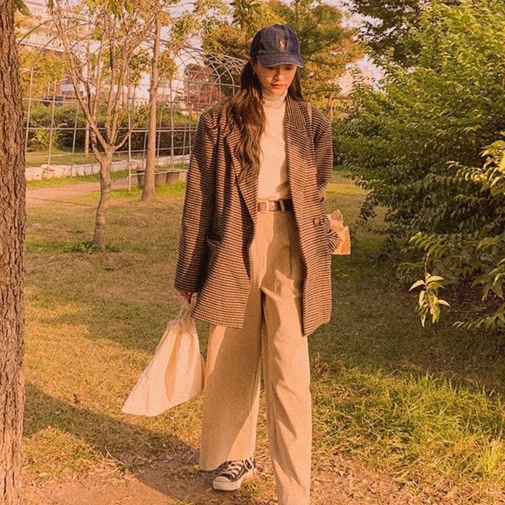 The younger brother to plaids, flannels are for the casual days, weekends if you may. Boxy flannels in shades of tans work well with the rest of the Academia look, without steering you more towards the skater aesthetic, which has flannel as its core print.