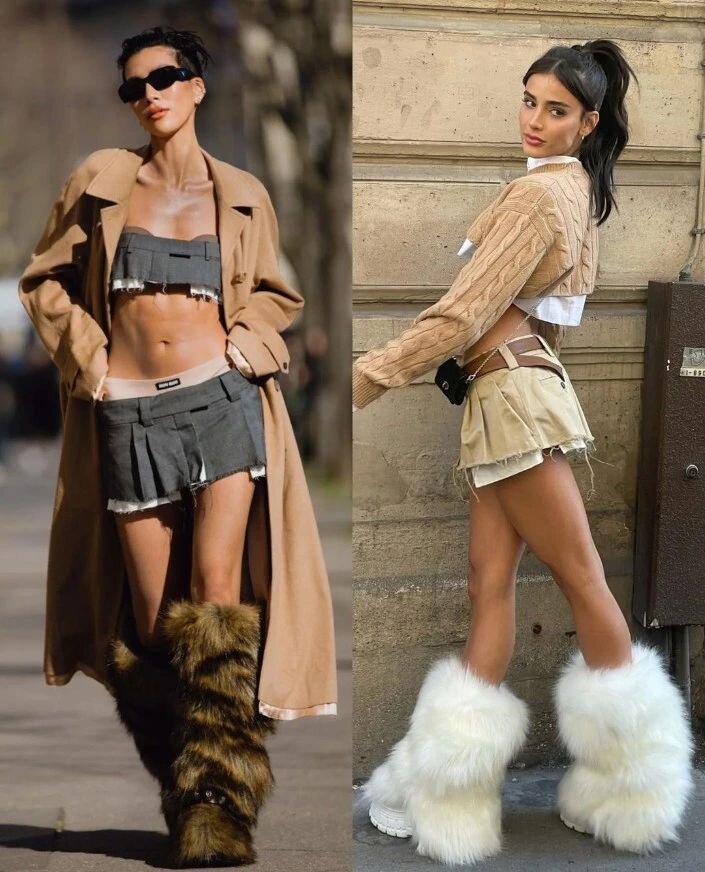 While fur will look best on any skirt that is below the knee, you can also try and pair it with a mini skirt to see if you feel confident in it. We don’t want you to go too out there, but a mini paired with a blazer and a fur shawl sure does give a chic appeal. An ultra-feminine and cute look can also be created with a fur boot itself!